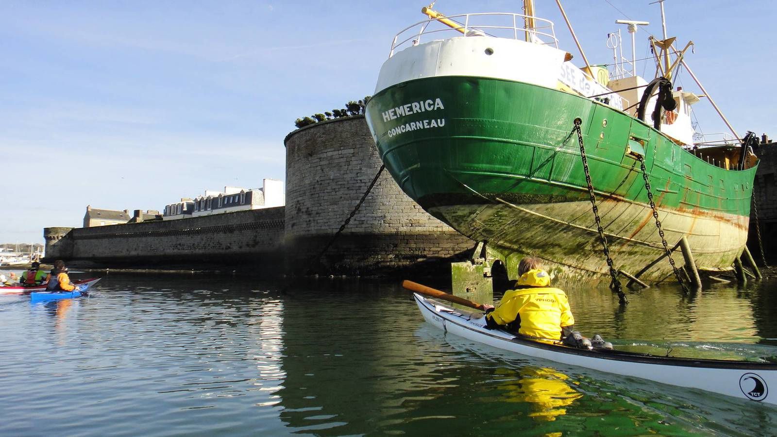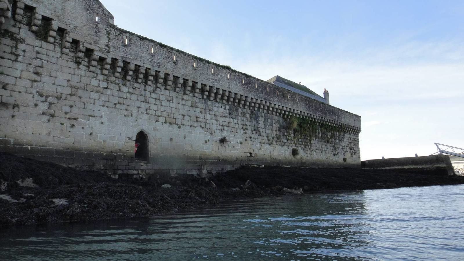 Nous entrons dans le port, en longeant les épais remparts de la Ville Close, construits au 14e siècle, et complétés par Vauban au 17e siècle.