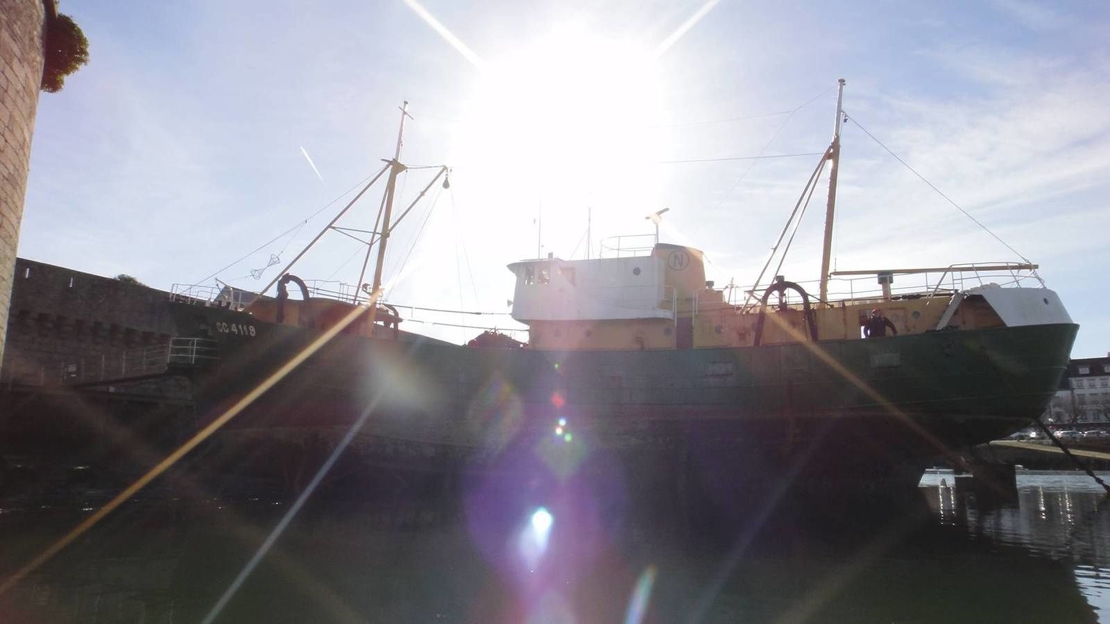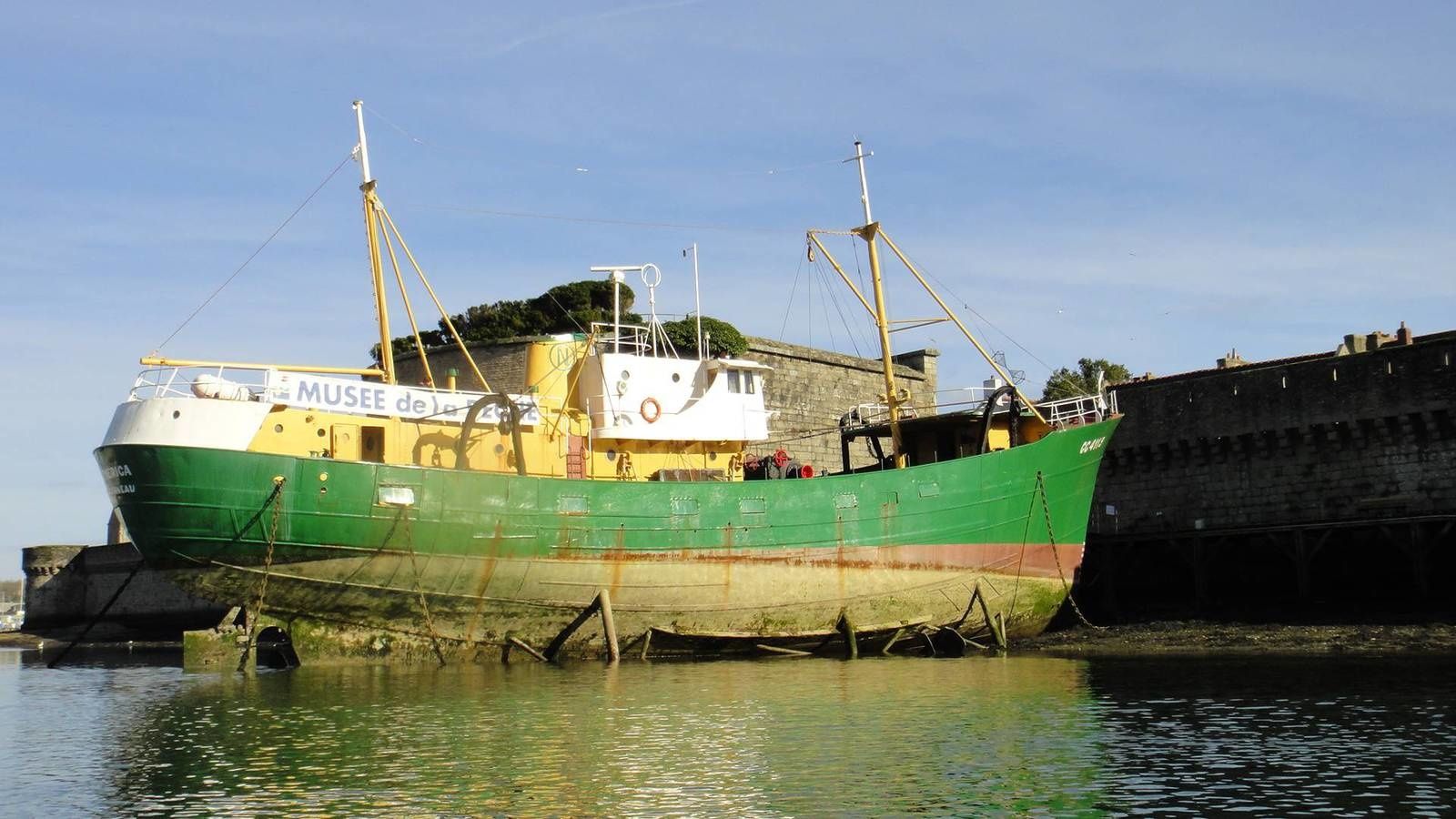 Fleuron de la collection, l’Hémérica, chalutier latéral, est amarré au quai du musée.