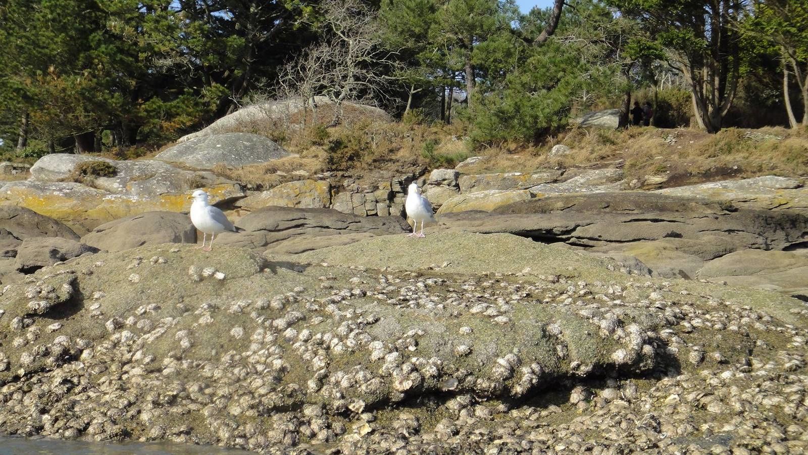 A l'entrée de l'anse de Kersaux, deux goélands nous accueillent, imperturbables !