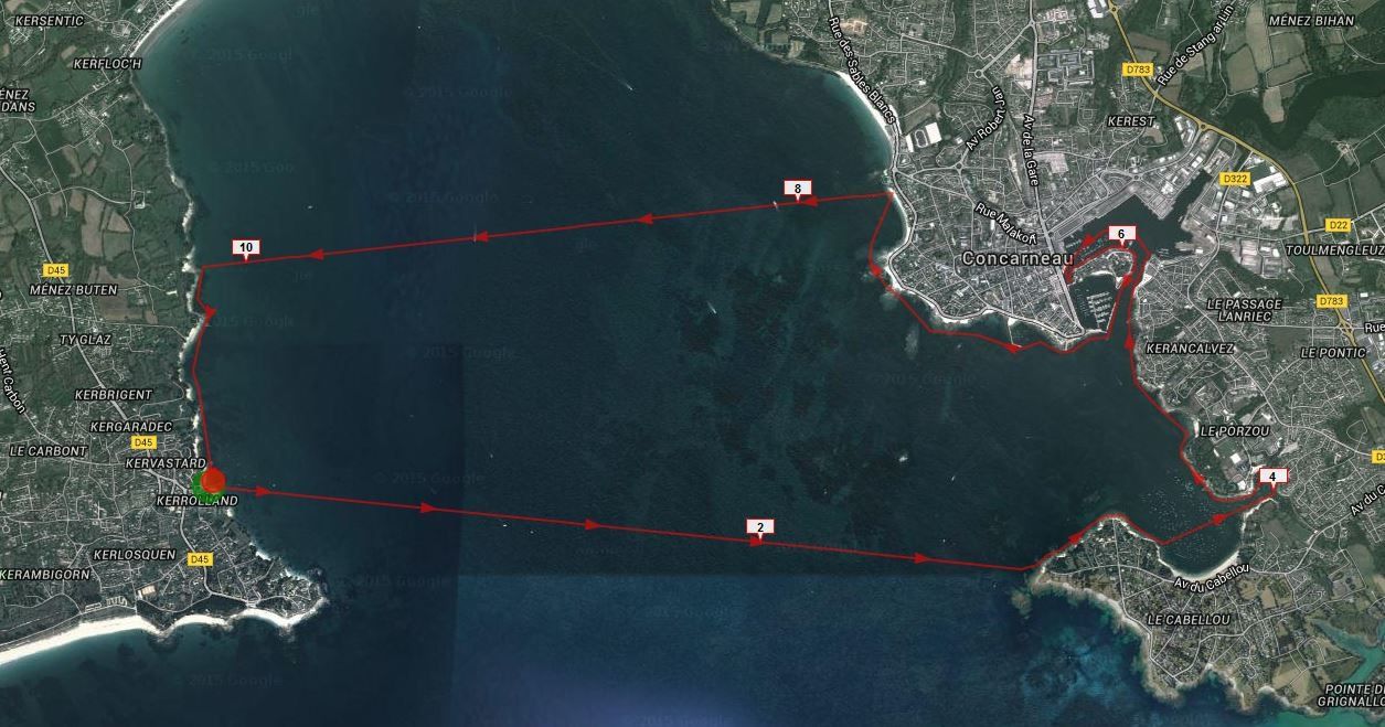 Nous mettons cap à l'est, en direction de la balise du Cochon, à l'entrée du port de Concarneau.